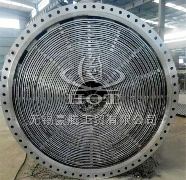 如上图就是用于废气冷却的单面可拆式不锈钢螺旋板换热器的实拍图片。同样的,如介质杂质较多的液体也同样适用。